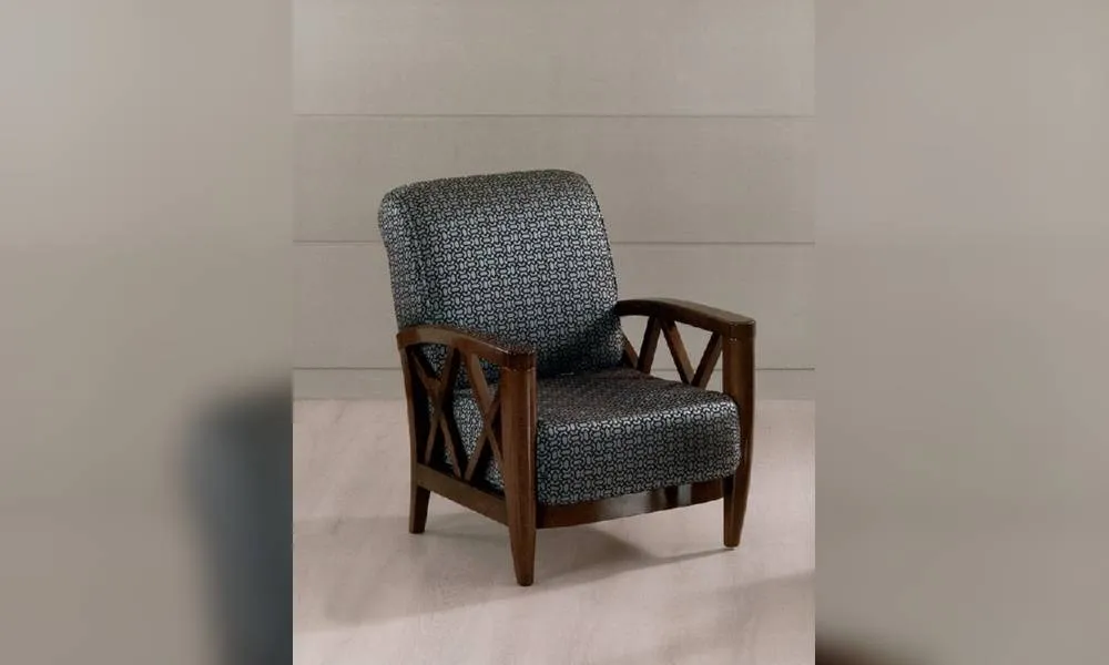 Кресло с обитыми сидением и спинкой. Возможны другие варианты отделки и обивки.