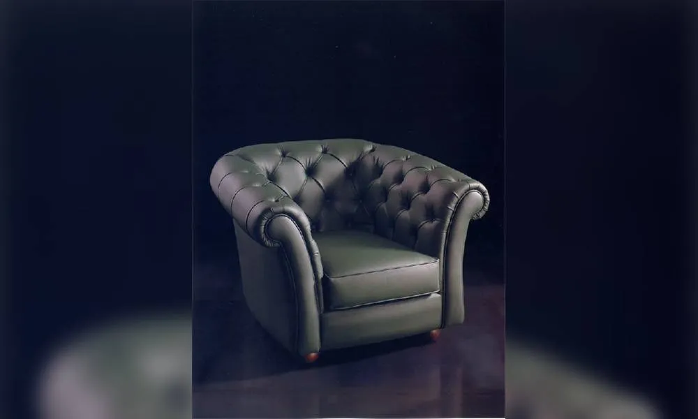 Кресло. Спинка и подлокотники на одном уровне, выполнены в технике капитоне. Возможны другие варианты обивки.