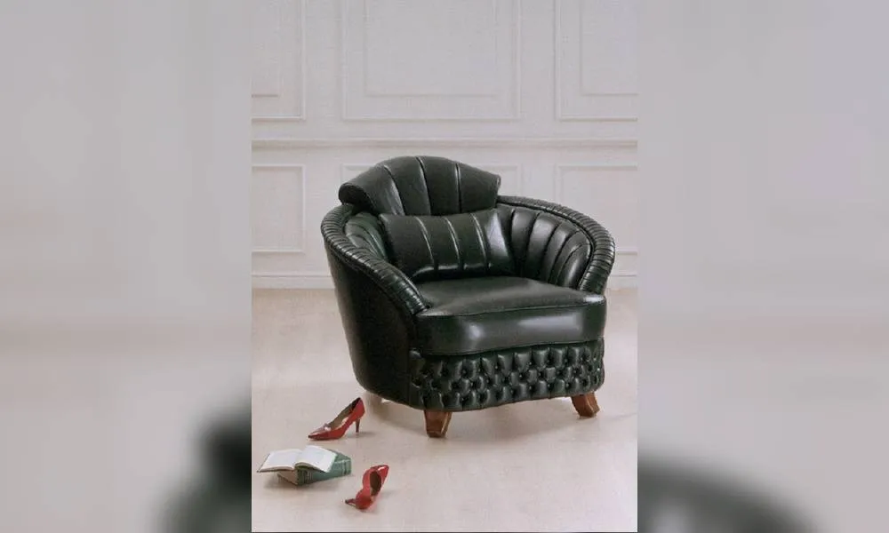 Кресло с деревянными ножками. Обито в технике капитоне. Возможны другие варианты отделки и обивки.