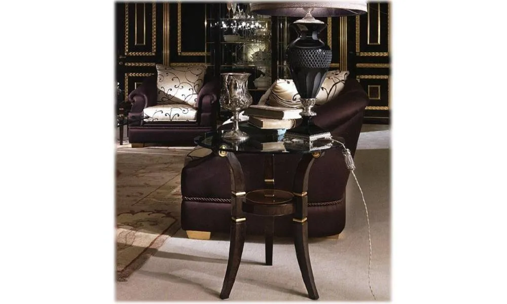 Подставка. Стеклянная столешница. Профили покрыты золотой фольгой. Декор ручной работы. Возможны другие цветовые варианты отделки.