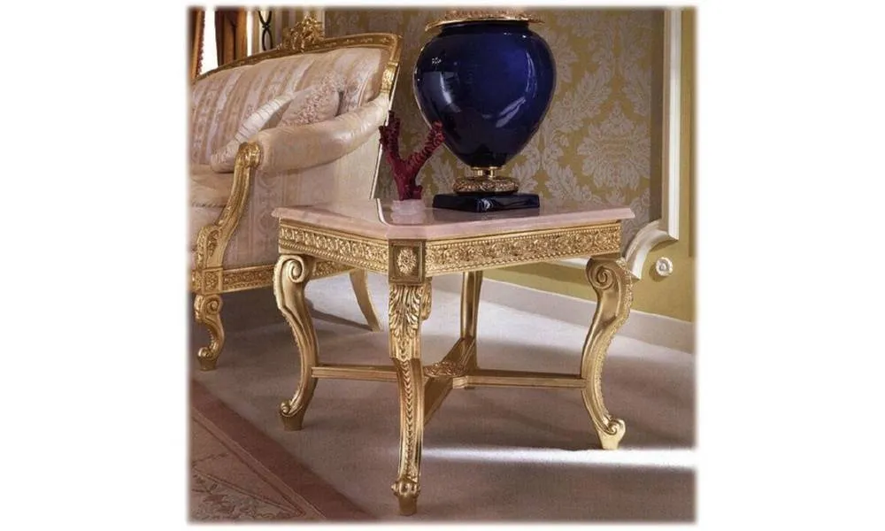 Подставка. Каркас из букового дерева в отделке золотой фольги. Столещница из Португальского Зозового мрамора. Декор ручной работы. Возможны другие цветовые варианты отделки.