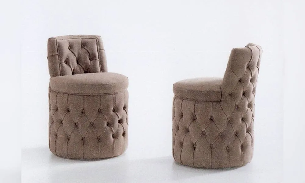 Круглый пуф с низкой спинкой. Обит в технике капитоне. Возможны другие варианты обивки.