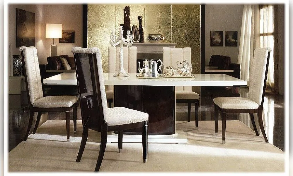 Прямоугольный обеденный стол. Декор ручной работы. Возможны другие цветовые варианты отделки и декоративные элементы с аппликациями из кожи.