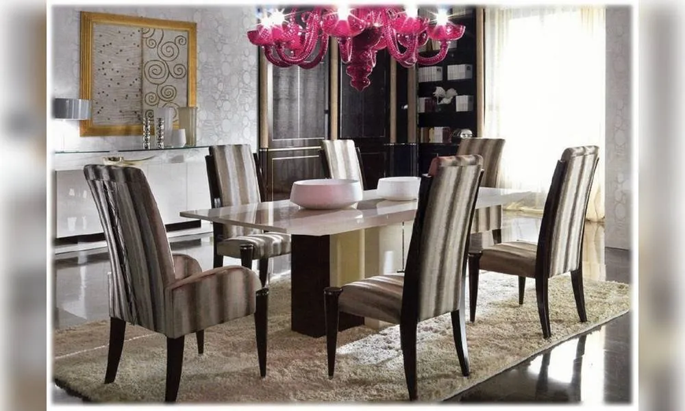 Прямоугольный обеденный стол. Декор ручной работы. Возможны другие цветовые варианты отделки и декоративные элементы с аппликациями из кожи.