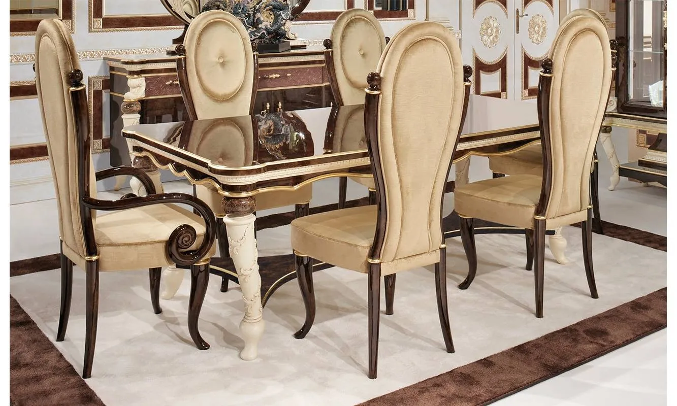 Обеденный стол с деревянными резными ножками, декорирован сферами из мрамора.