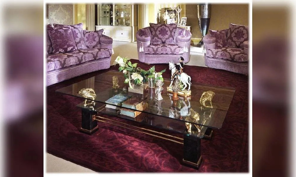 Журнальный столик c полкой. Стеклянная столешница. Декоративные профили с эффектом устаревшего золота. Стол украшен скульптурами. Декор ручной работы. Возможны другие цветовые варианты отделки.