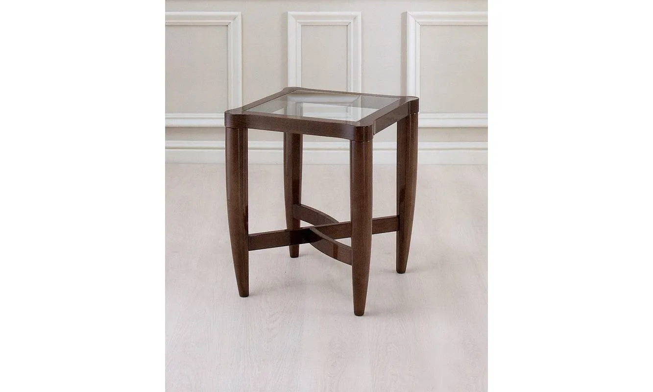 Приставной столик со стеклянной столешницей. Возможны другие варианты отделки.